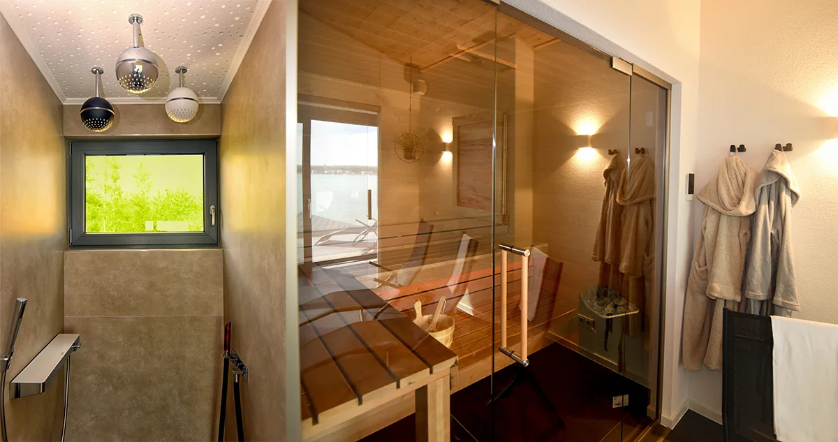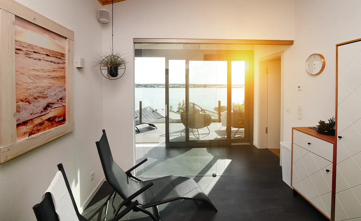 Für ein einzigartiges Wellnesserlebnis bietet unser Chalet einen offenen Saunabereich in der oberen Etage mit herrlichem Seeblick, mit Liegen im Ruhebereich! Auf den großen Balkonen können Sie den ganzen Tag auf Lounge Möbel verbringen, die Sonne und die tolle Aussicht genießen.